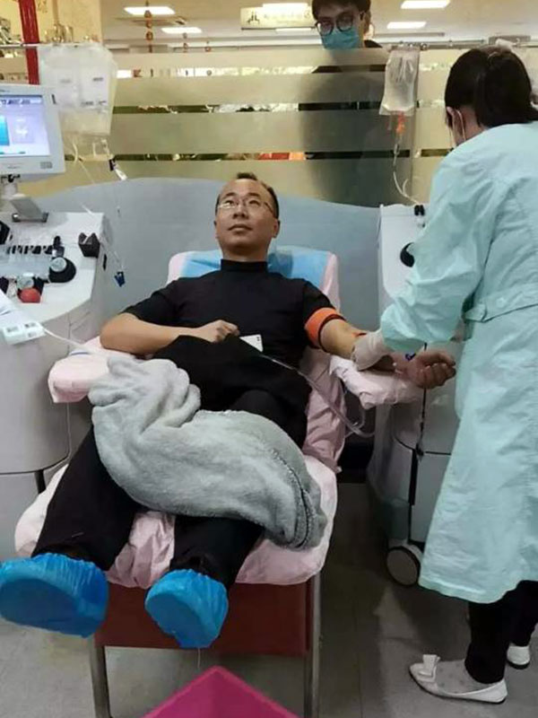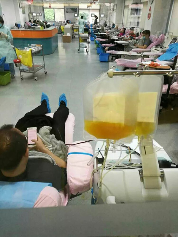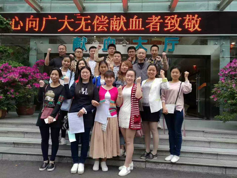 2017年4月18日四川泰華堂制藥有限公司老員工喬鐵鎖的愛人范安娜(廣漢市雒城鎮(zhèn)九小教師)突發(fā)重病,體內(nèi)血小板急劇降低,生命垂危,被送至華西醫(yī)院搶救。急需血小板的消息在公司傳開后,在公司工會(huì)的組織下,公司職工不分男女、不分血型、不分老少,踴躍報(bào)名為她捐獻(xiàn)血小板。由于血小板的提取對(duì)身體狀況要求非常嚴(yán)格,經(jīng)初步篩選,4月20日,18位基本符合要求的同志一大早就來到成都市血液中心抽血化驗(yàn)做最后的檢查,最終有5位同志共捐獻(xiàn)了六個(gè)治療量的血小板。